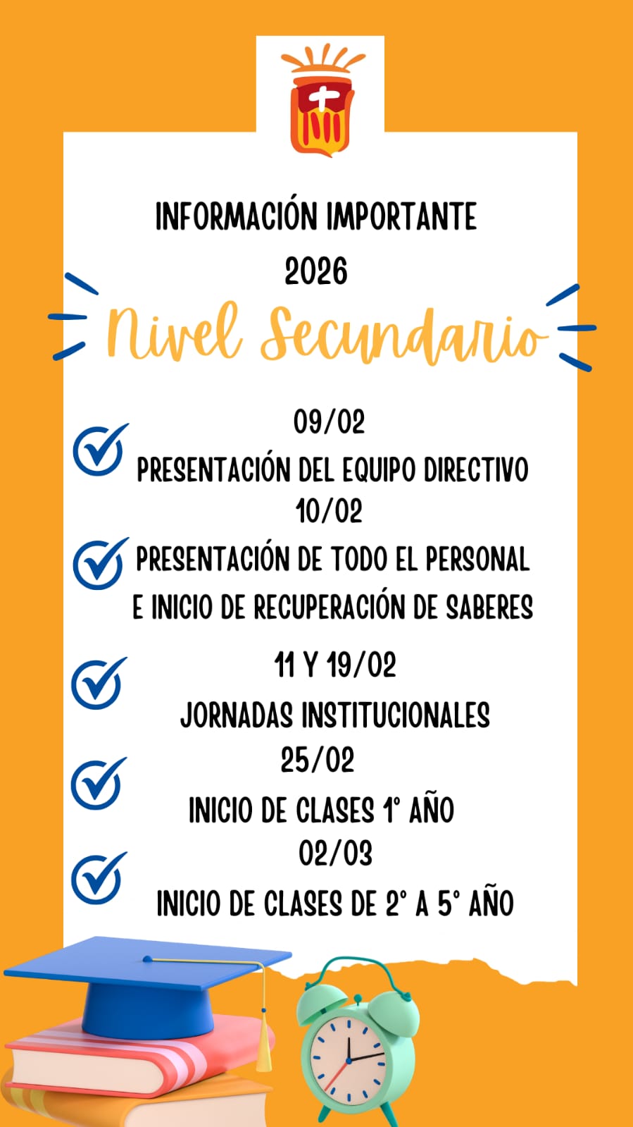 Estimadas familias les informamos las fechas a tener en cuenta en el comienzo del ciclo lectivo 2026.